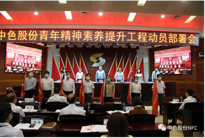 為深入貫徹落實習近平總書記在中國共產主義青年團成立100周年大會上的重要講話精神,團結動員公司廣大團員青年聽黨話、跟黨走,在落實集團公司“1+4”發展戰略、實施中色股份新發展戰略、推動企業高質量發展的征程上踔厲奮發、勇毅前行,根據集團公司黨委總體部署,中色股份黨委于6月29日召開青年精神素養提升工程工作部署暨青年突擊隊命名授旗大會。