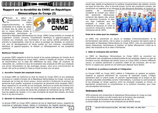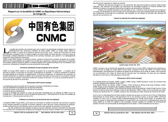此次可持續(xù)發(fā)展報告發(fā)布活動以連載的形式進行,共有五期,涉及版面10個,分別從和諧勞資關(guān)系、維護和諧生態(tài)、關(guān)懷社會福祉、安全生產(chǎn)等方面對中國有色集團進行全面報道,體現(xiàn)了集團公司堅守深化中剛友誼的初心和使命,與剛果(金)各方一起,在平等互利的基礎(chǔ)上,共促高質(zhì)量的礦業(yè)發(fā)展,形成“你中有我、我中有你”的發(fā)展共同體和命運共同體。