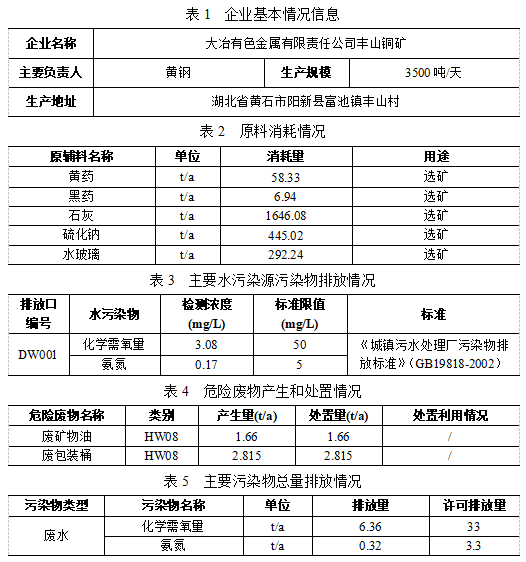 根據(jù)《中華人民共和國清潔生產促進法》、《清潔生產審核辦法》等相關文件規(guī)定,現(xiàn)將大冶有色金屬有限責任公司豐山銅礦清潔生產審核情況及2024年企業(yè)基本信息、污染物排放和總量控制情況公告如下,請社會各界對豐山銅礦實施清潔生產審核的情況進行監(jiān)督。