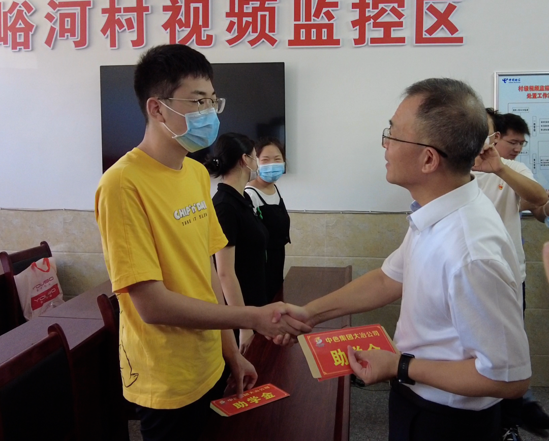 在文峪河村村委會,張晉軍代表公司向村委會捐贈了50萬元資金,定向用于鄉村振興幫扶,現場慰問了兩名老黨員,并向3名今年考取大學的學生發放了助學金。他詳細詢問了3名學生的基本情況及考取的學校和專業等,鼓勵大家好好學習,靠知識、靠奮斗改變命運。文峪河村村委會第一書記汪金午代表村委會接收了捐贈資金,并對公司表示感謝。