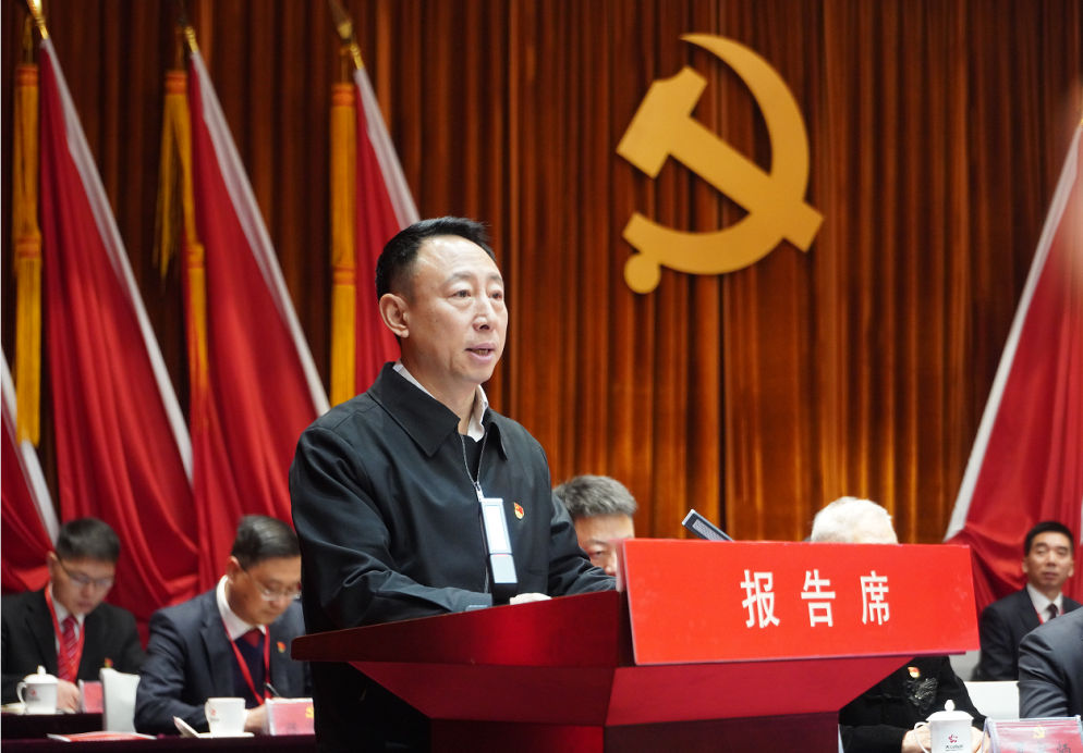 公司黨委書記、董事長胡國斌代表公司黨委作題為《堅持長期主義? 聚焦兩端發力? 為建設“優高美強好”新有色團結奮斗》的工作報告。